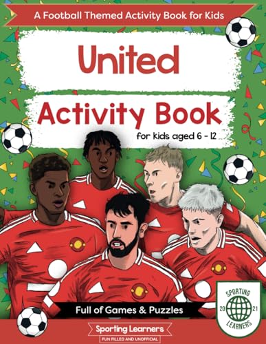 United Activity Book For Kids Aged 6-12: Football Themed Word searches, Mazes, Dot to dot, Colouring in, Trivia