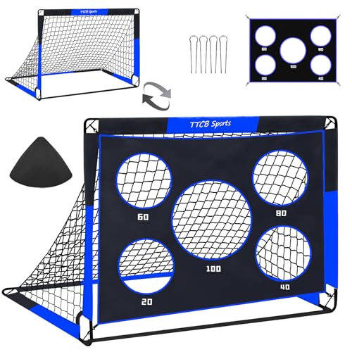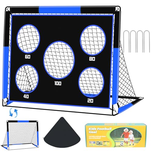 TTCB Sports 2 in 1 Football Goal, 120X90X90cm Football Goals for Kids, Soccer Training Net with 5 Target Ranges, Foldable Target Training Equipment for Garden, Park, Backyard(Blue)