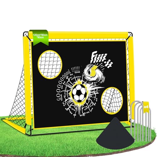 TTCBSPORTS 2 in 1 Football Goal, 120X90X90cm Football Goals for Kids, Soccer Training Net with 5 Target Ranges, Foldable Target Training Equipment for Garden, Park, Backyard (yellow)