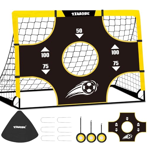 Yimore Kids Football Goal Portable, 3 In 1 Mini Football Goal Garden Indoor Outdoor 120 * 90 * 90 cm, Foldable Football Training with Target Gift for Boys Grils 3+ (Yellow)