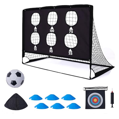 Kids Football Goal with Net Training Equipment 4ft x 3ft | 2 Football Goals for Garden with Ball, Target and Cones - for Outdoor and Indoor Games, Games, Field, Backyard