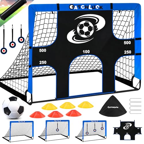 CATCHLUCK Kids Football Goal Pop Up Football Net for the Garden 4ft x 3ft, 5ft x 4ft, Kids Training Equipment with Target and Carry Bag