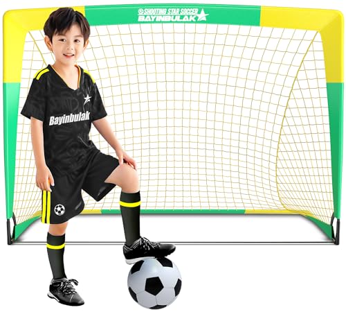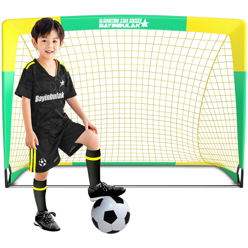 BAYINBULAK Portable Football Goal Football Net Post for Garden Training Festive Play (3'x2.2', Yellow+Green)- 1 Pack