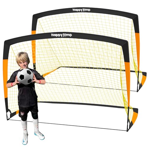 Happy Jump Football Goal Pop Up Football Net Post for Garden Training Festive Gift -7'x5'(Black+Orange) -2 Pack