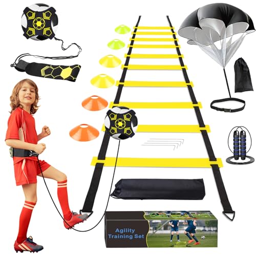 YGORTECH Football Training Equipment, Speed Agility Training Set, Football Kick trainer, Agility Ladder, Resistance Parachute, 6 Disc Cones & Jumping Rope, Football Skills Equipment for Kids+Gift Box