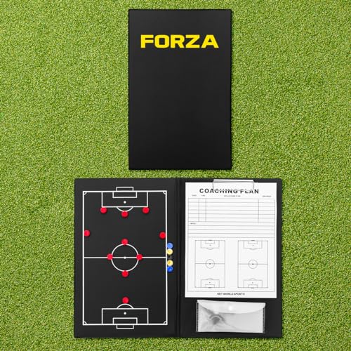 FORZA Magnetic Football Tactics Clipboard Folder - A4 Notepad | 27x Magnetic Markers | Full Football Pitch Layout - Waterproof Black Coaching Folder | Built In Plastic Pouch