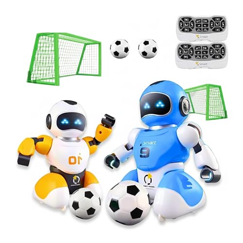 SGM 3066A RC Robot Football Game Toys - 2PCS Rechargeable Remote Control Robots with Soccer Ball, Goals & Controllers | Interactive Football Toy Gift | STEM Robot, Football Training