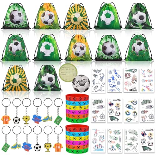 GOLDGE Football Party Bags Fillers, 60pcs Football Party Favors Set with Football Invitations, Stickers, Wristbands, Keychain, Drawstring Bag, Football Toys for Boys Girls Birthday Party Gift