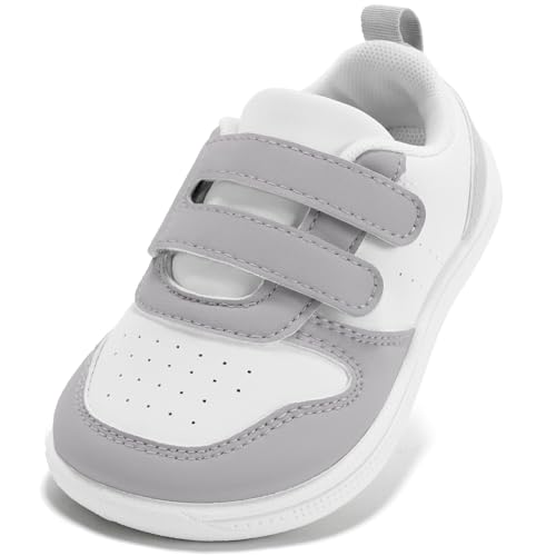 STQ Boys & Girls Trainers Toddler Wide Toe Box Barefoot Shoes School First Walking Baby Infant Lightweight for Football Kid Running Child with Non-Slip Soft Tennis Prewalker Sneakers Grey White Size 3