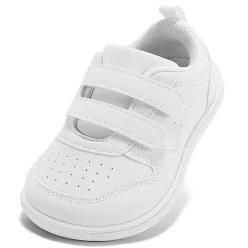 STQ Boys & Girls Trainers Toddler Wide Toe Box Barefoot Shoes School First Walking Baby Infant Lightweight for Football Kid Running Child with Non-Slip Soft Tennis Prewalker Sneakers All White Size 3