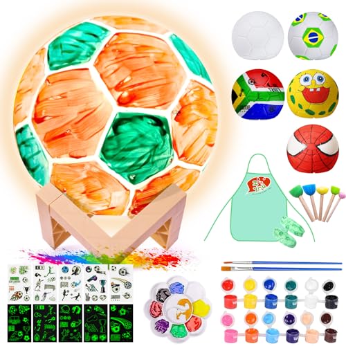 ONLYFUN Paint Your Own Football Lamp Kit, World Cup 3D Football Night Light Kids, with Football Stickers & Stand, Football Gifts for Boys Girls, Arts and Crafts for Kids Ages 3 4 5 6 7 8 9 10 11 12