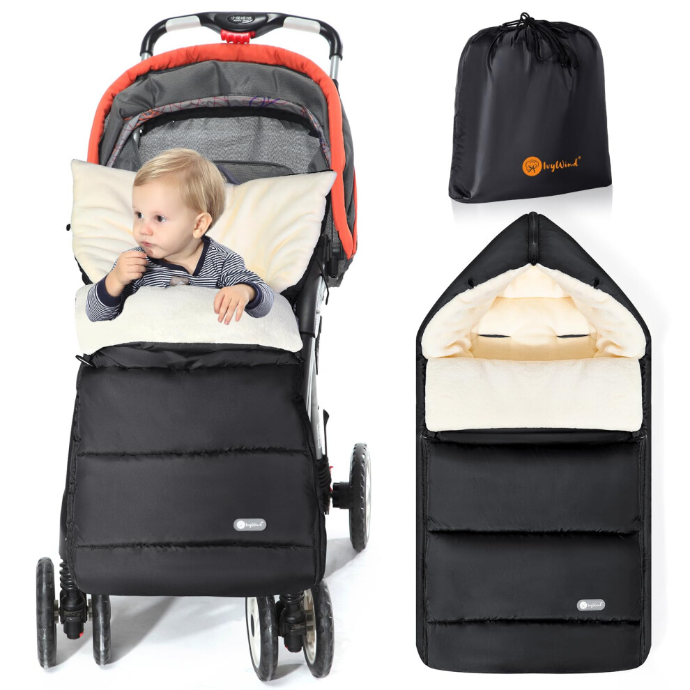 Universal Baby Pushchair Footmuff Winter Pram Liner, Waterproof Windproof, Drawstring Hood, Stroller Compatible, BlackA