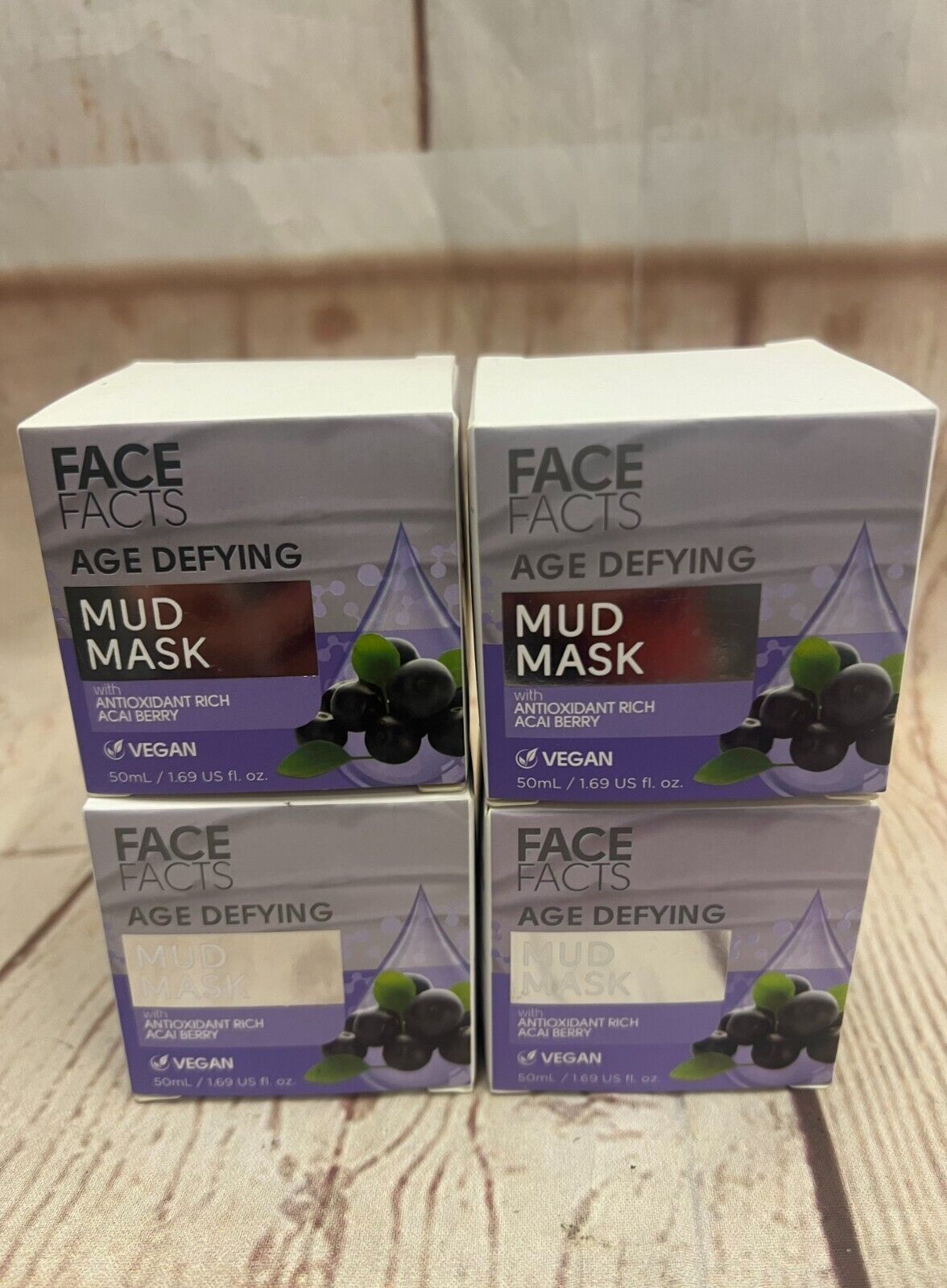 Face Facts Age Defying Mud Mask Antioxidant rick Acai Berry VEGAN 4 x 50ml