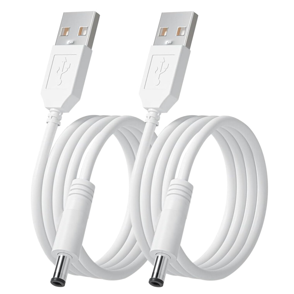 2PCS 5V Power USB Cable Fast Charging Type A USB with 3.5x1.35mm Barrel Jack Compatible with Foreo Luna Charger Replacement Power Cable 1.2m White
