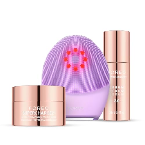 FOREO Firm & Clean Bundle - Luna 4 Plus Sensitive Facial Cleansing Brush + Supercharged SERUM 2.0, 30ml + Hydrating Night Mask, 75 ml - Near Infrared Light Therapy - Microcurrent Facial Device