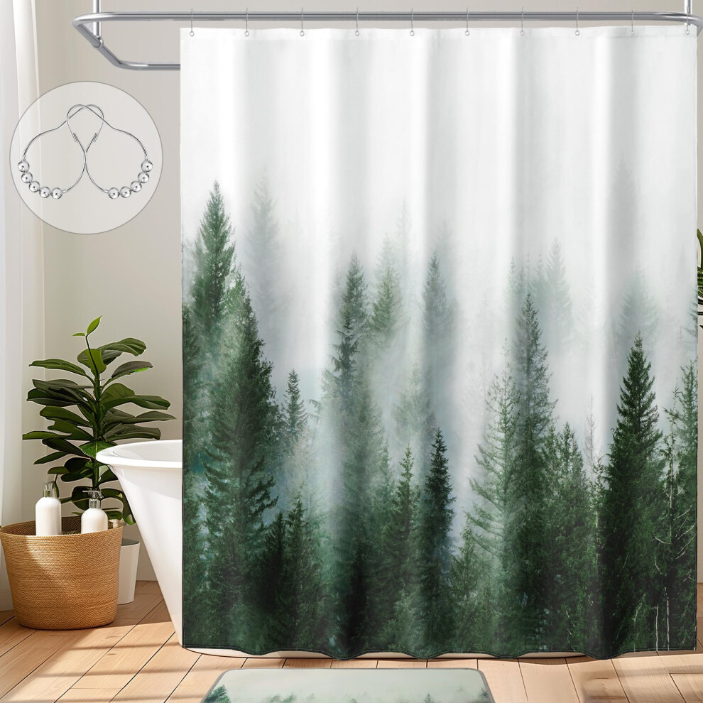 ASDCXZ Landscape Shower Curtain 180x200 cm, Natural Landscape Mysterious Fog Forest Green Jungle Bath Washable Shower Curtains Polyester Textile
