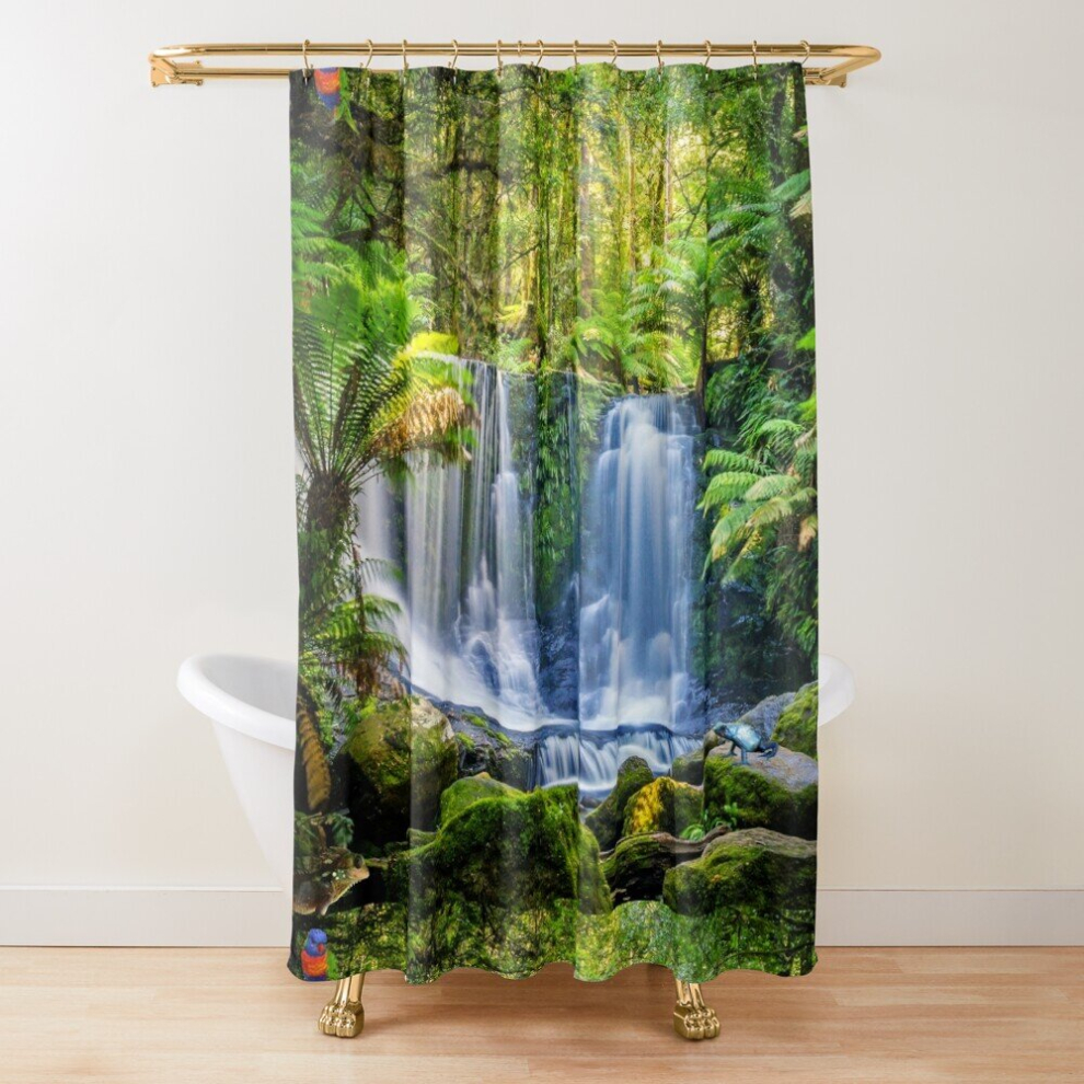 Shower Curtains Tropical Exotic Rainforest Green Forest Waterfall for Bathroom Decor 72x72 inches