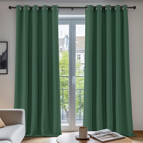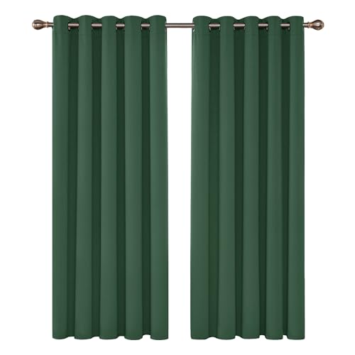 Deconovo Green Curtains Thermal Insulated Eyelet Blackout Curtains for Bedroom 66 x 54 Inch Forest Green Two Panels