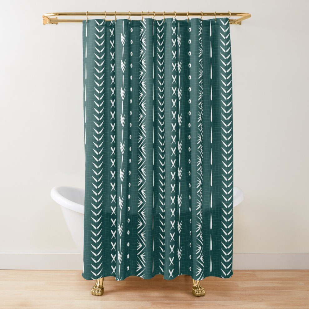 Shower Curtains Boho mud cloth pattern, forest green and white for Bathroom Decor 72x72 inches