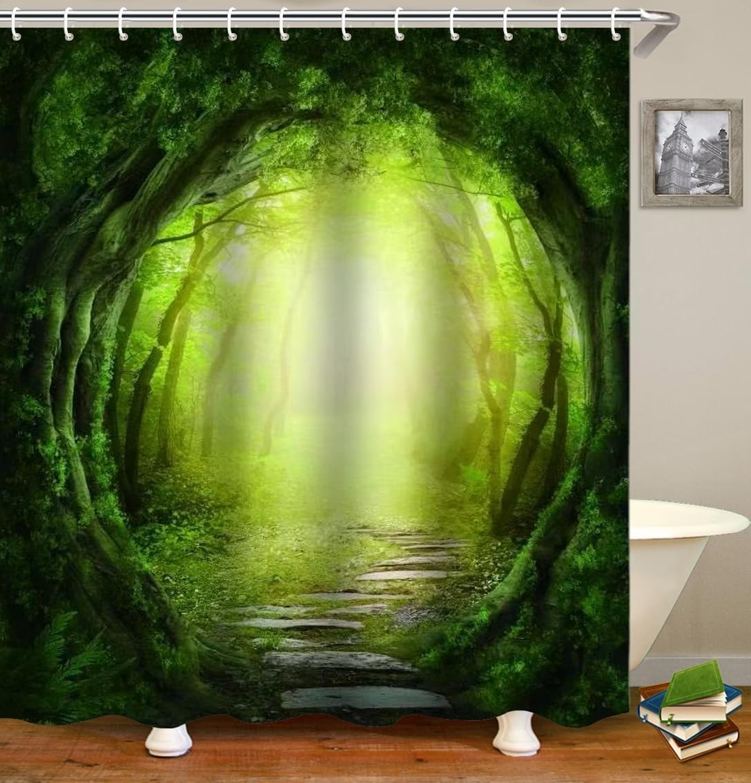 ORTIGIA Green Misty Forest Shower Curtains,Nature Shower Curtain,Woodland Shower Curtain,Fantasy Fog Magic Tree Bath Curtain for Bathroom,Fall Shower Curtain,Waterproof Polyester Fabric-72 Wx72 L