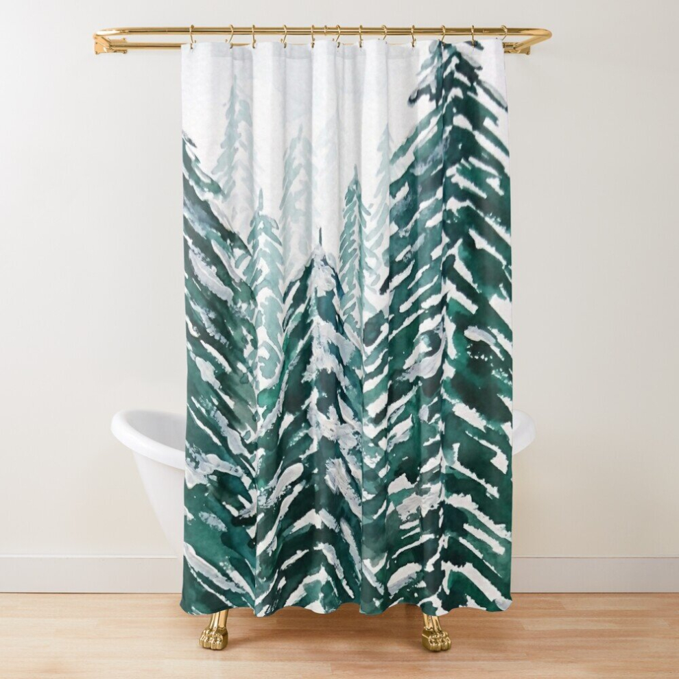 Shower Curtains snowy pine forest green for Bathroom Decor 72x72 inches
