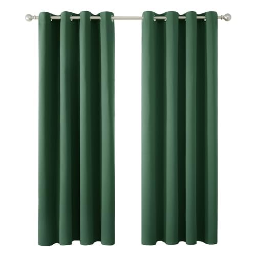 Deconovo Green Curtains Thermal Insulated Eyelet Blackout Curtains for Bedroom 46 x 54 Inch Forest Green Two Panels