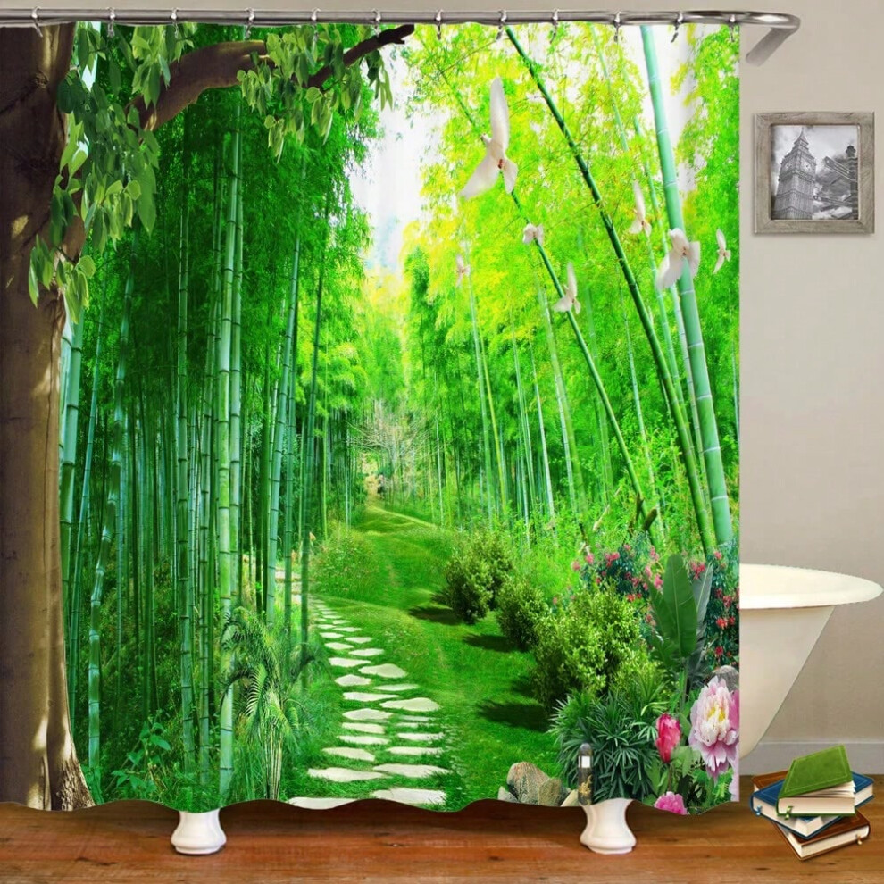 (SM5982, W180xH200cm) 3d Printing Green Forest Waterfall Shower Curtains Waterproof Bathroom Curtain With Hooks Bath Curtain 180*200 Polyester Fabric