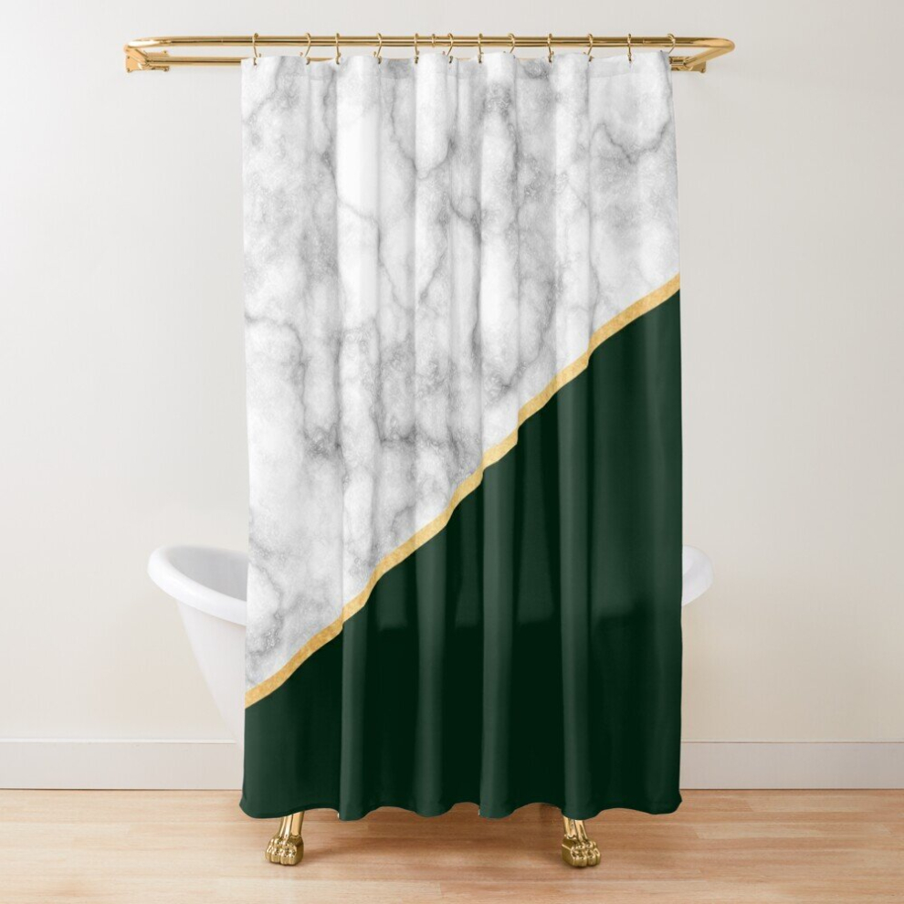 Shower Curtains Classic Marble, Forest Green, and Gold Stripe for Bathroom Decor 72x72 inches