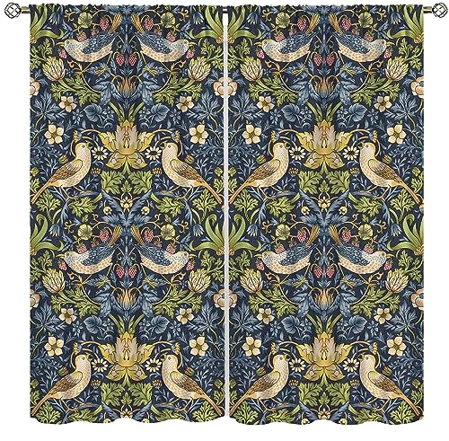 William Morris Curtains Forest Peacock Green Watercolor Vintage Flower Art Style Room Windows Treatments for Bedroom Living Room 42x45in Decor