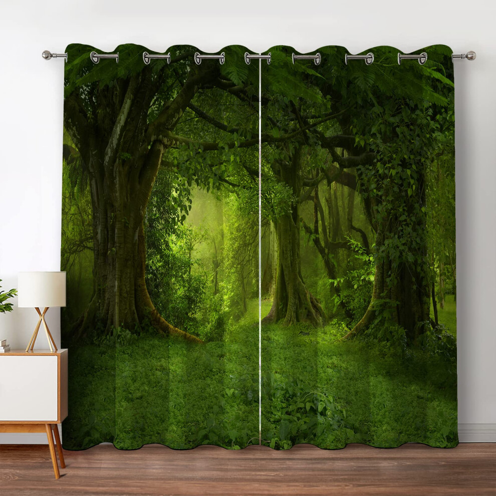 Jekeno Forest Blackout Curtains Tropical Jungle Green Trees Foliage in The Woodland Himalayas Landscape Nature Decor for Bedroom Living Room