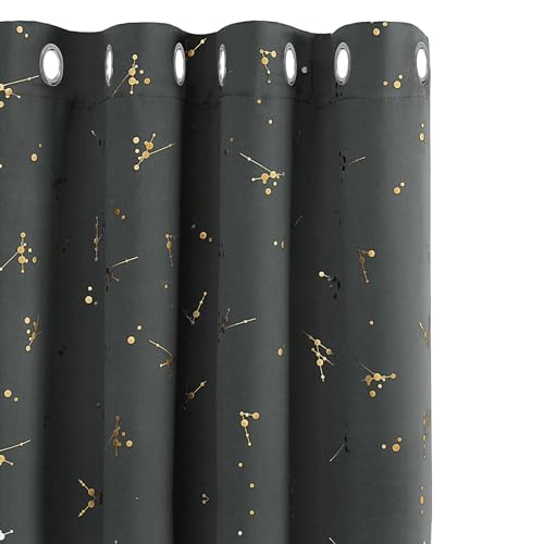 Deconovo Room Darkening Curtains, Eyelet Thermal Insulated Gold Wave Foil Printed Curtains for Christmas, 46 x 72 Inch (Width x Length), Dark Forest, One Pair