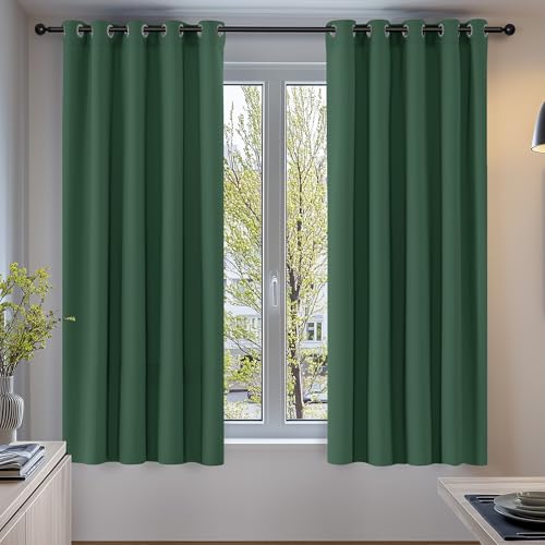 Dreamscene Forest Green Curtain 46 x 54, Eyelet Blackout Curtains for Bedroom Living Room Modern Super Soft Decorative Insulated Lined Curtains Set for Summer Winter