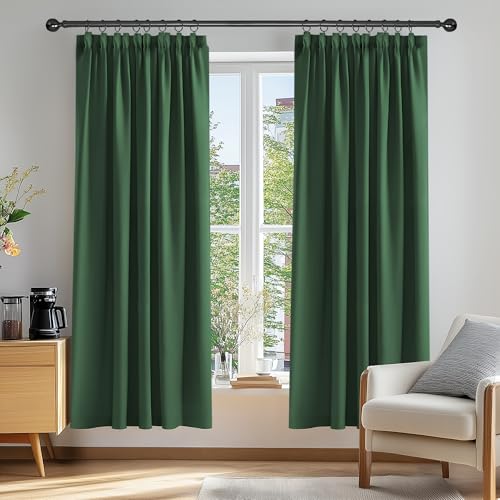 Deconovo Pencil Pleated Blackout Curtains Energy Saving Noice Reducing Thermal Insulated Curtains for Kids 46 x 72 Inch Forest Green 1 Pair