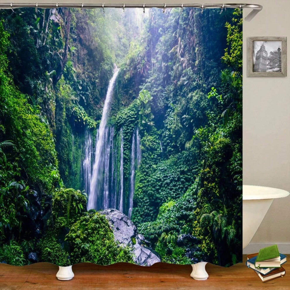 (DM6387, W90xH180cm) 3d Printing Green Forest Waterfall Shower Curtains Waterproof Bathroom Curtain With Hooks Bath Curtain 180*200 Polyester Fabric