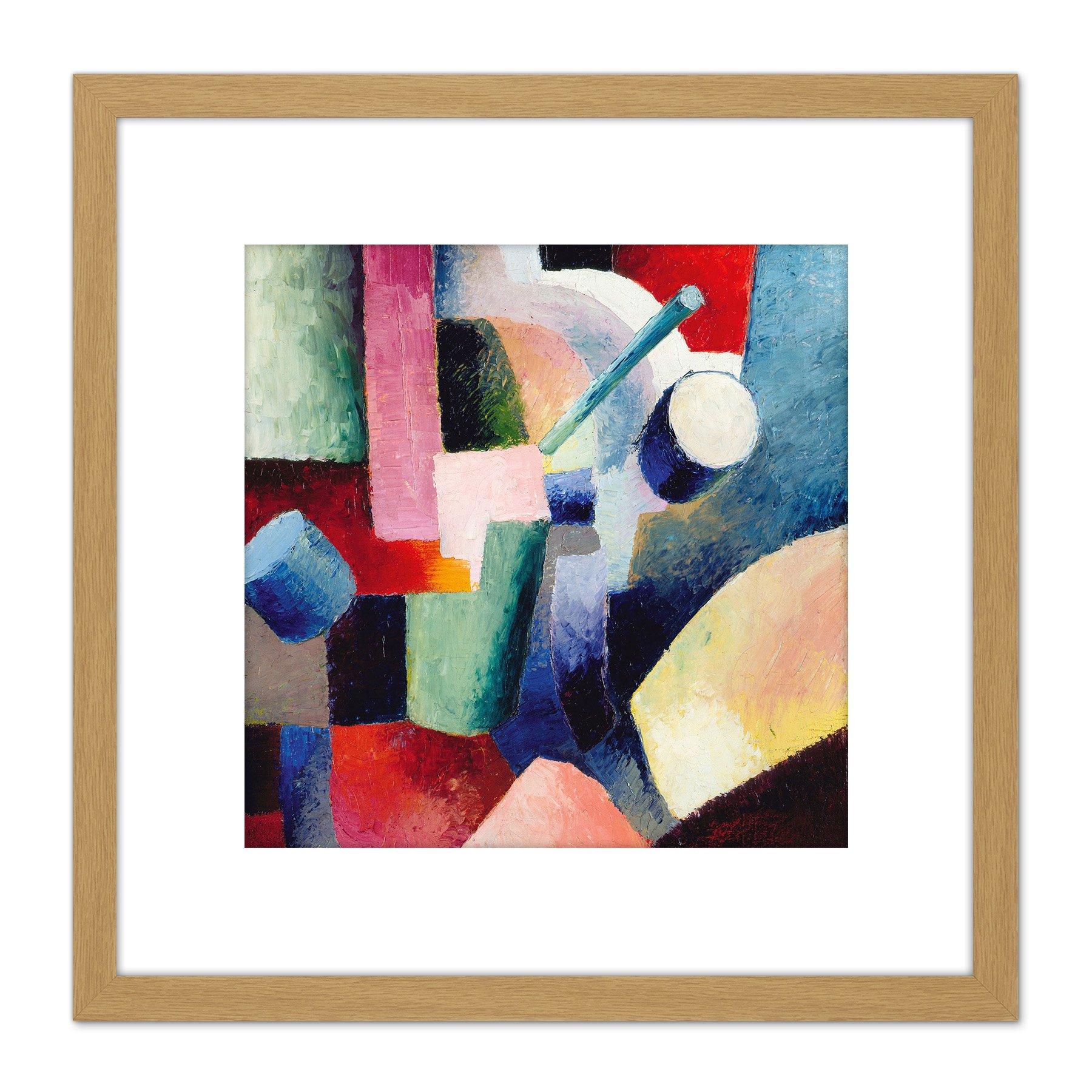 August Macke Colored Composition Of Forms 1914 8X8 Inch Square Wooden Framed Wall Art Print Picture with Mount