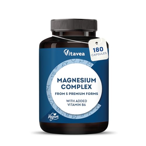 Magnesium Complex 400mg - 5 Forms of Magnesium (Bisglycinate, Citrate, Oxide, Carbonate, Liposomal) + Vitamin B6 - High Absorption - Energy, Muscles, Fatigue, Nervous System - 180 Capsules vitavea