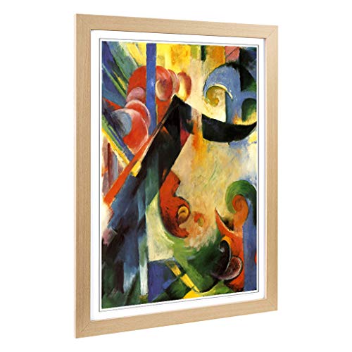 Big Box Art Framed Print of Franz Marc Fighting Forms 2 Design | Wall Art Picture | Home Decor for Kitchen, Living, Dining Room, Bedroom, Hallway, Office, Oak, A2 / 24.5x18 Inch / 62x45cm