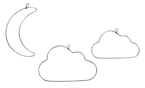 Rayher 24126000 Set of Three Wire Shapes for Wreath Making, Macrame and Baby Shower Crafts, One Crescent Moon and Two Cloud Forms, 10-12 cm, silver