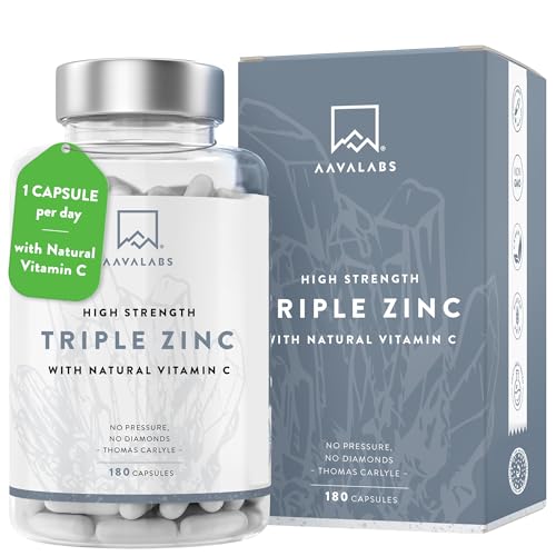 Triple Zinc 25mg - 3 Forms of Zinc with Natural Vitamin C - Zinc Picolinate, Zinc Bisglycinate and Zinc Monomethionine - 180 High Strength Zinc Tablets - 6 Months Supply - Zinc Supplements
