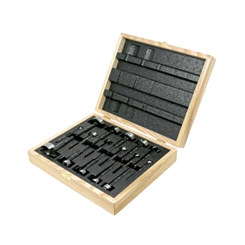 Fisch FSA-375005 16 Piece Black Shark Forstner Drill Bit Combo Set Custom Wooden Box Includes Bits from 15mm up to 35mm and 1/4-inch up to 2-inch Diameter Forged Steel Made in Austria