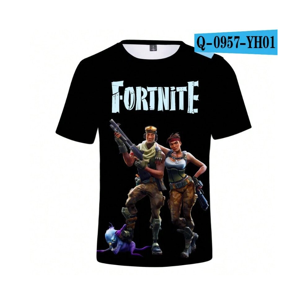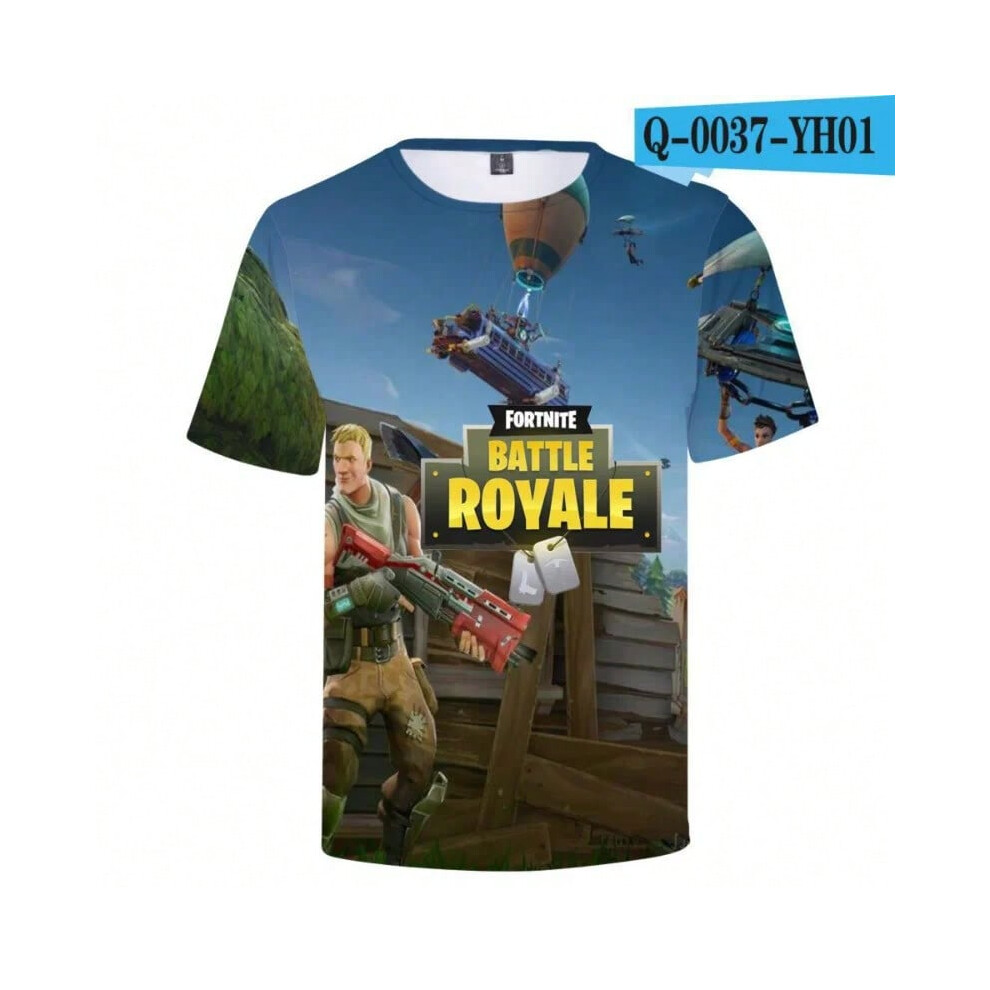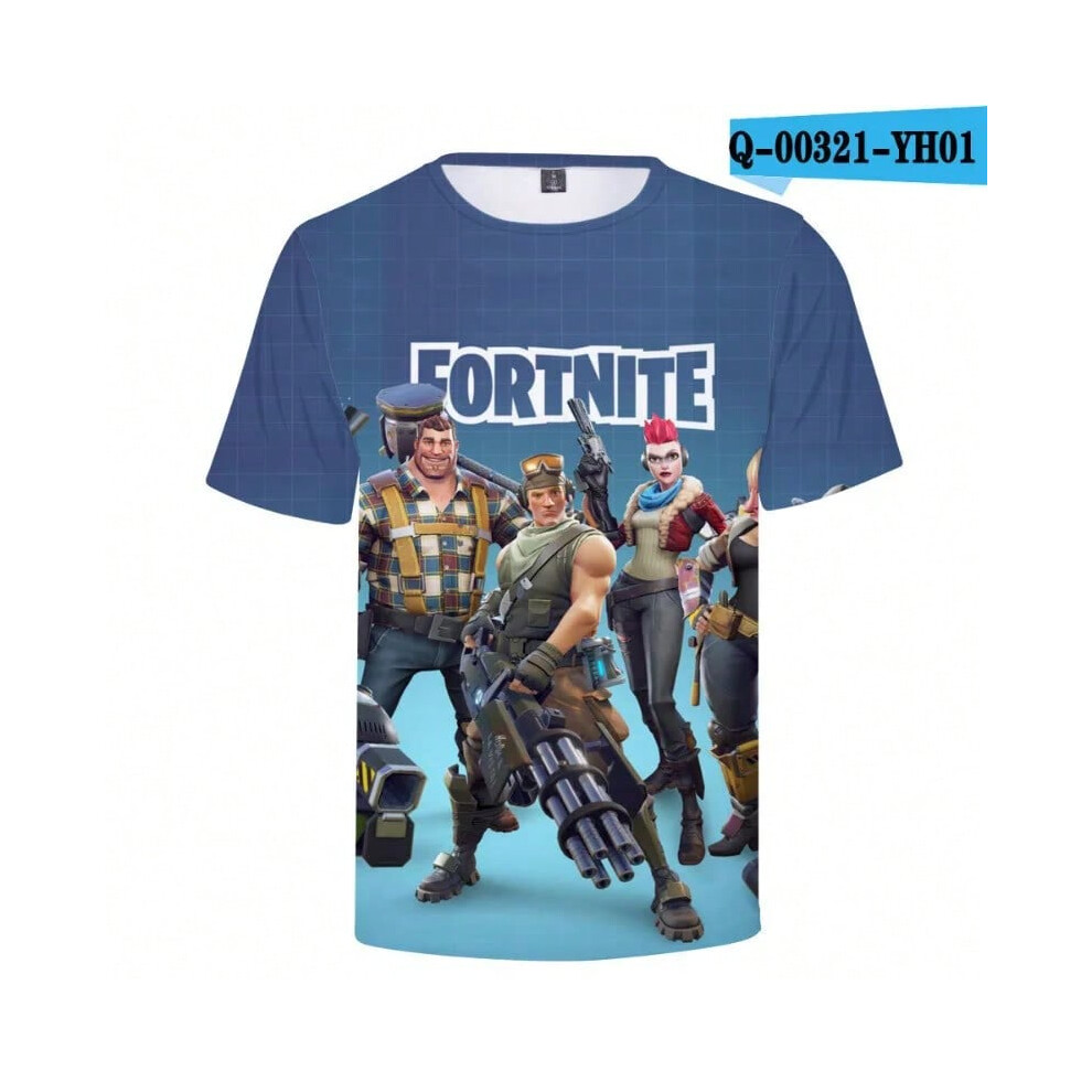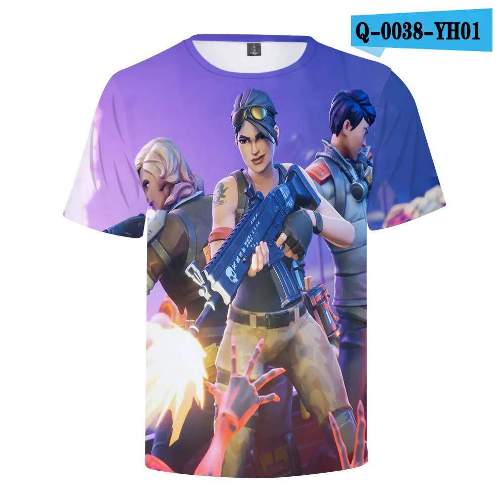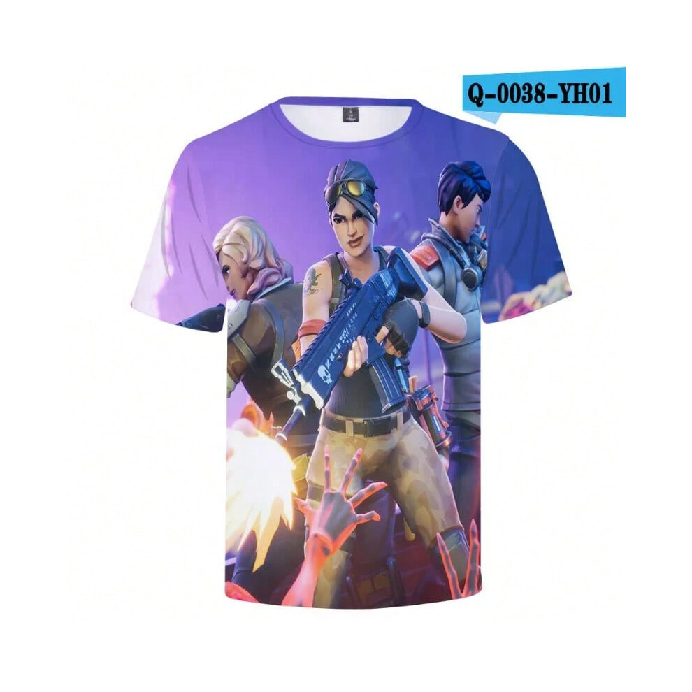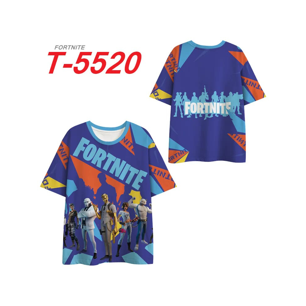 (T-5520, L) Fortnite Shooting Game T-Shirt Summer Short Sleeve Cartoon Print T Shirt Men and Women Fashion Leisure TShirt Clothing Gifts
