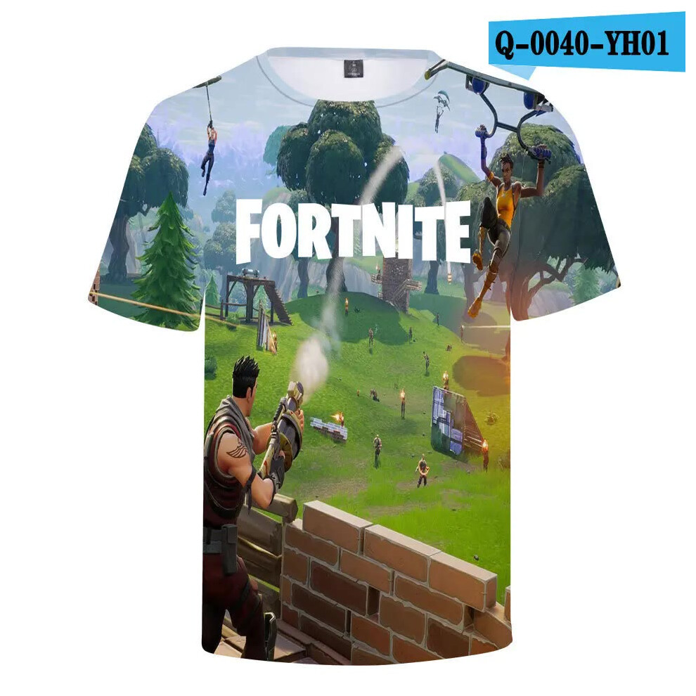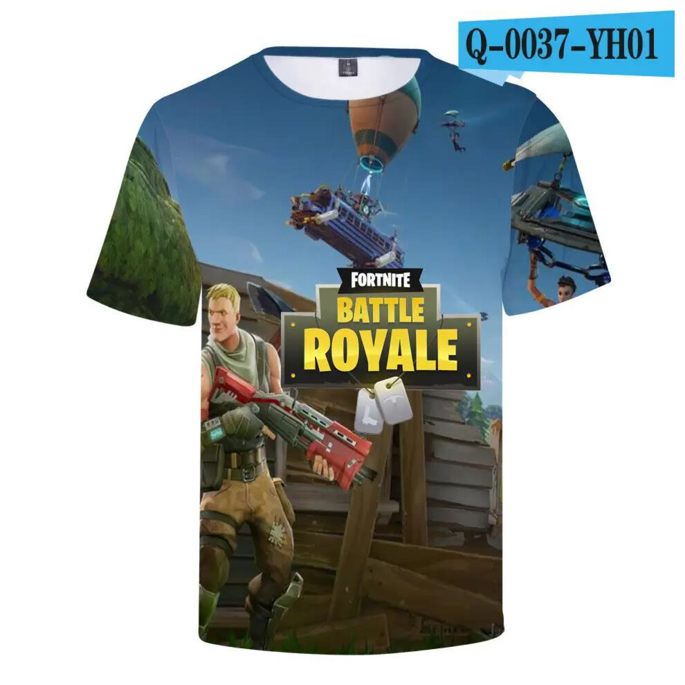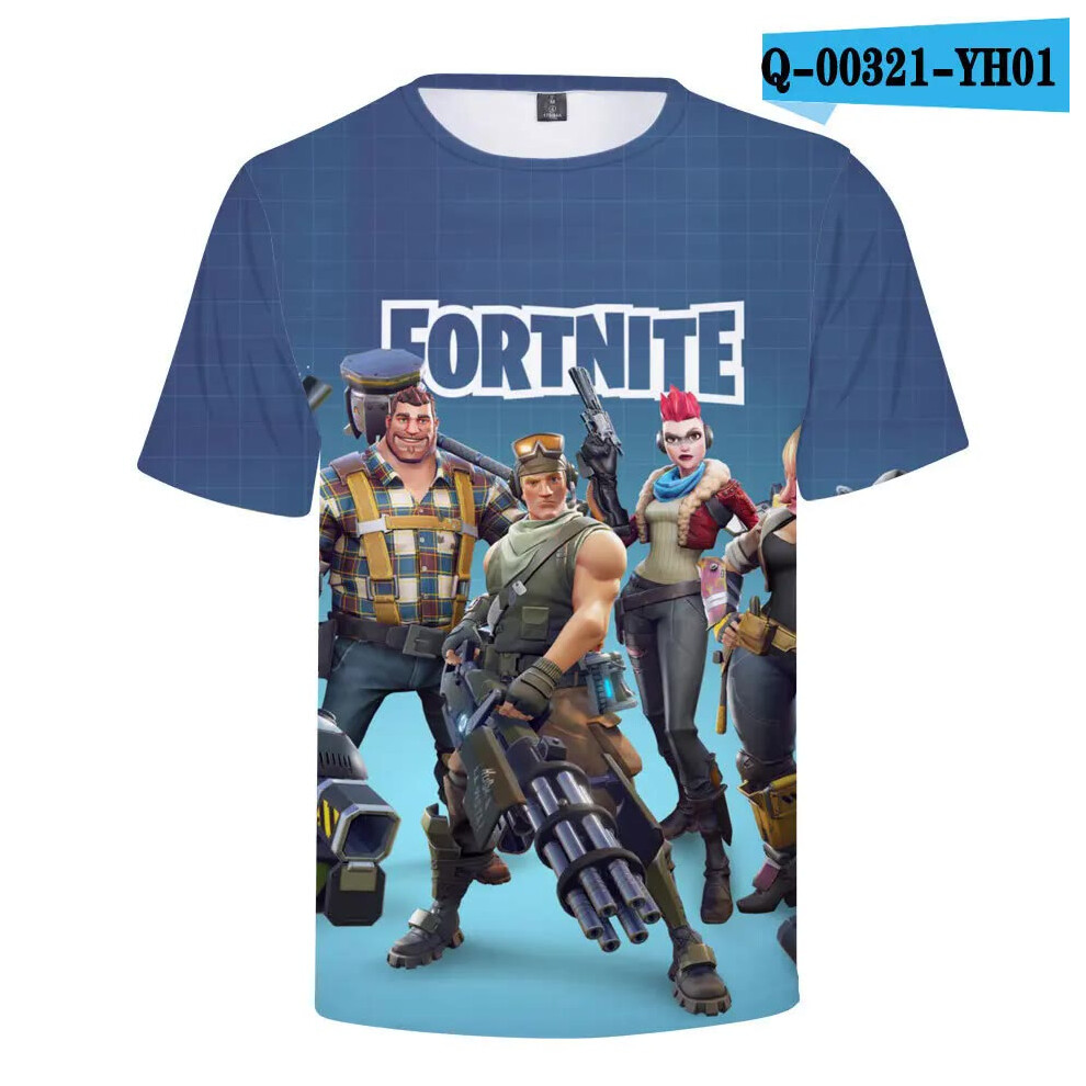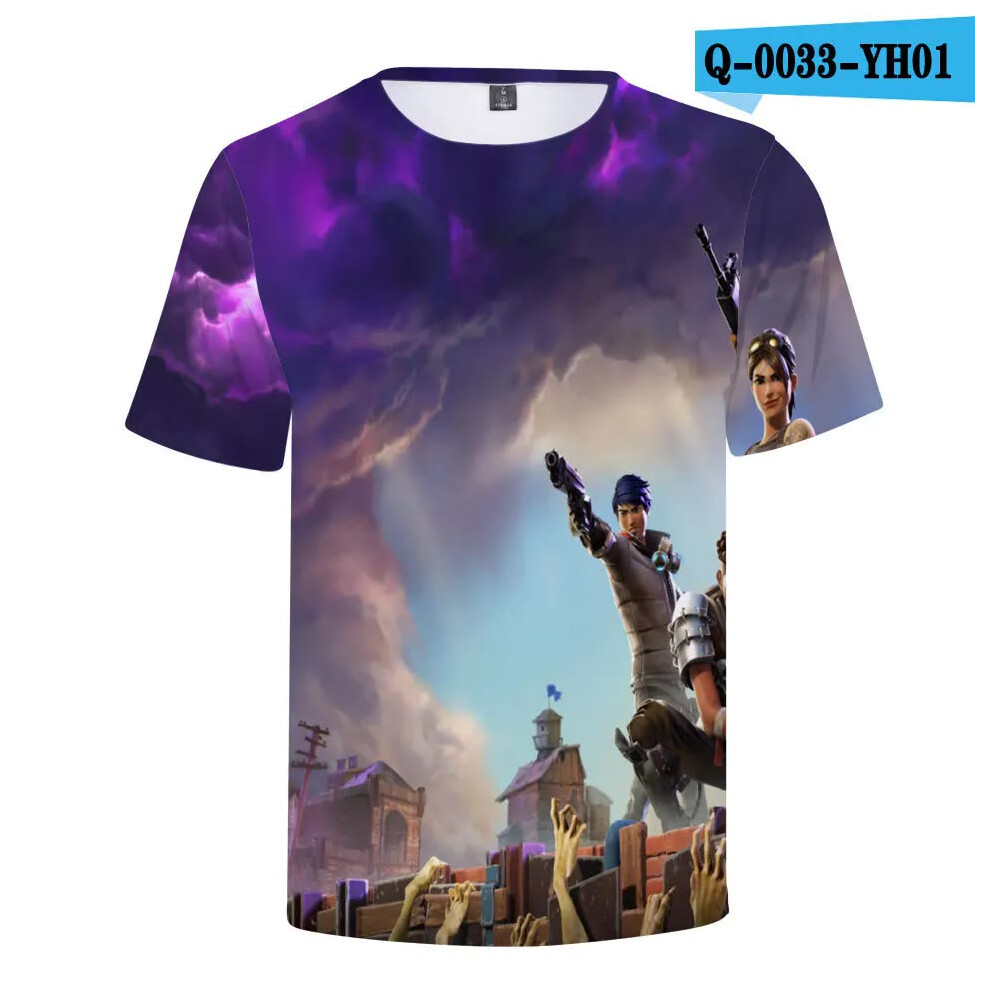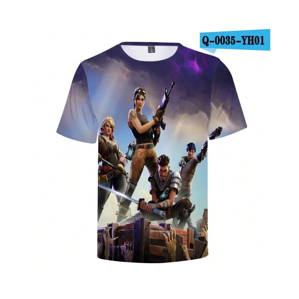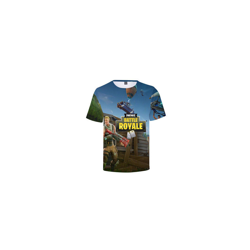 (T-5520, L) Fortnite Shooting Game T-Shirt Summer Short Sleeve Cartoon Print T Shirt Men and Women Fashion Leisure TShirt Clothing Gifts