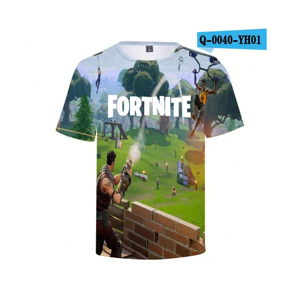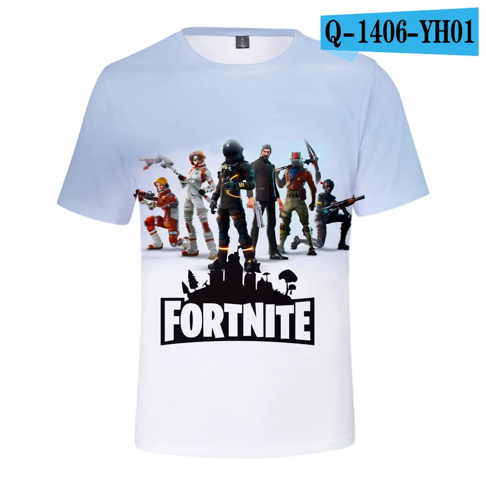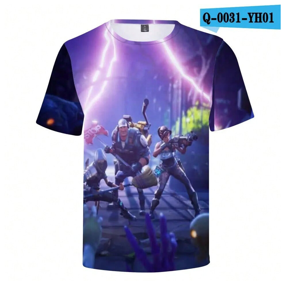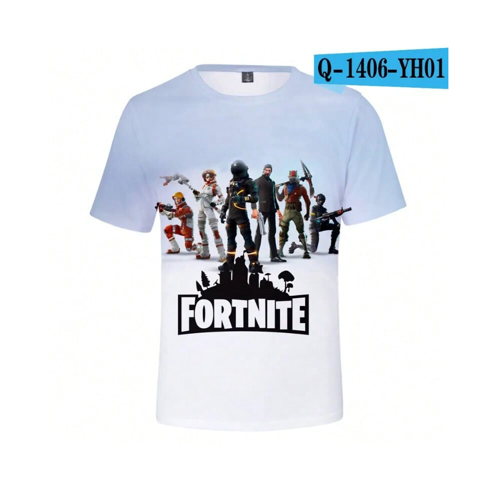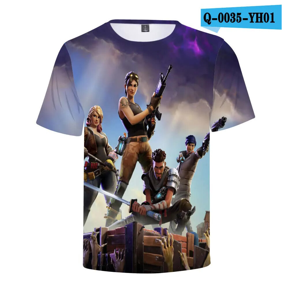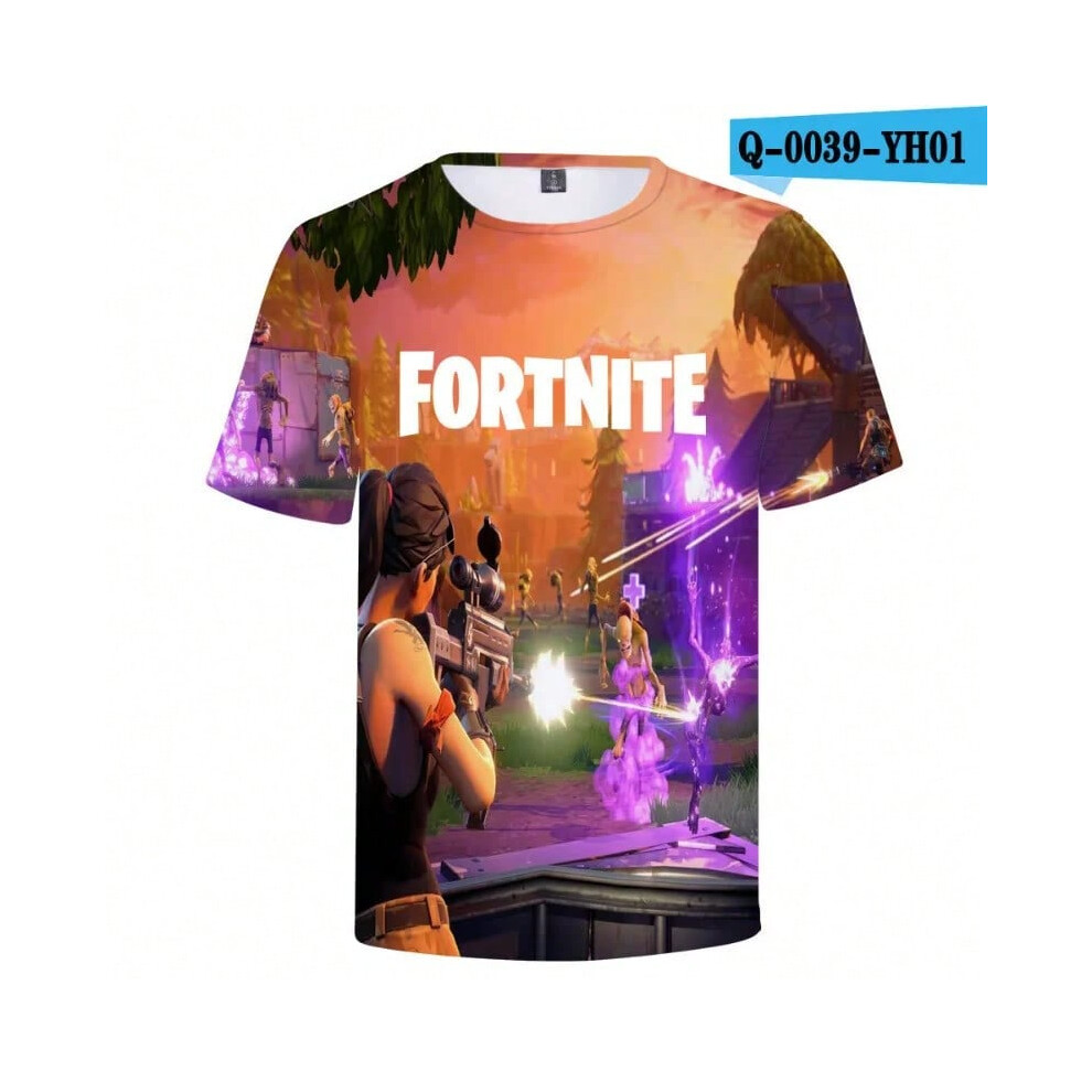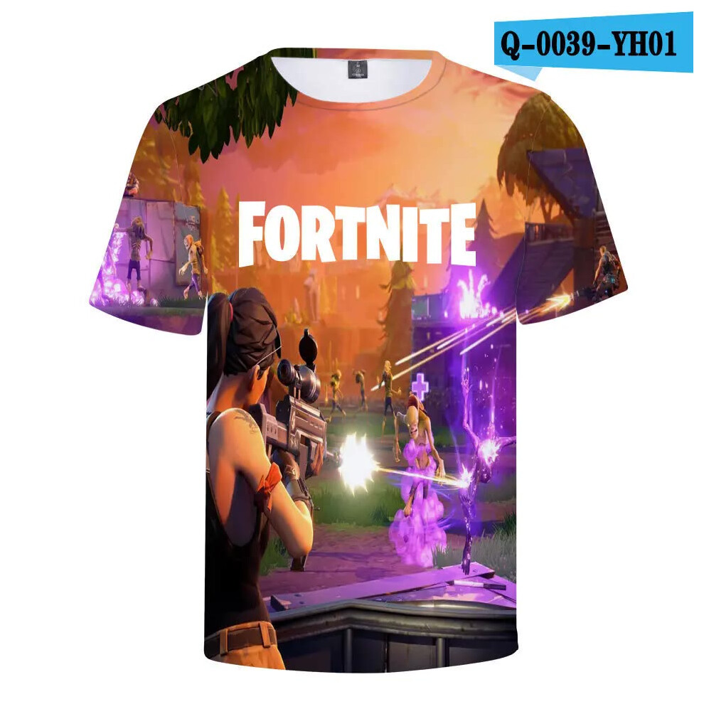 (T-5520, L) Fortnite Shooting Game T-Shirt Summer Short Sleeve Cartoon Print T Shirt Men and Women Fashion Leisure TShirt Clothing Gifts