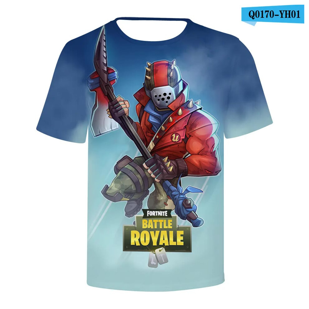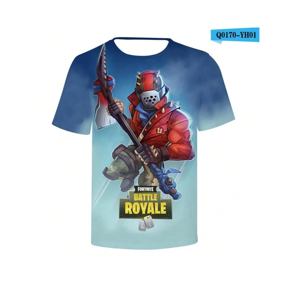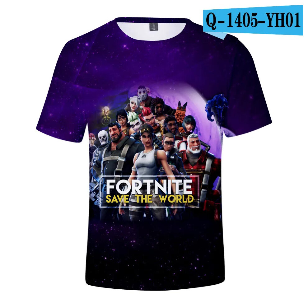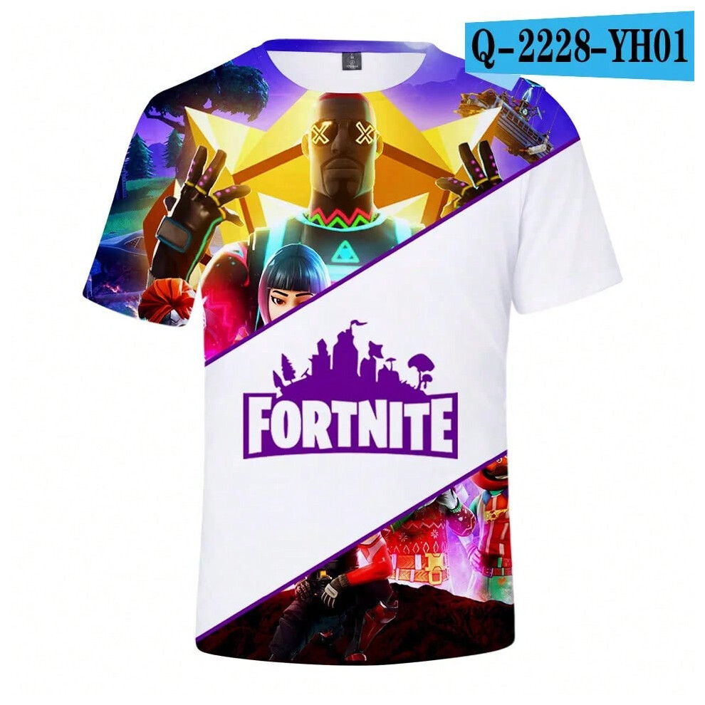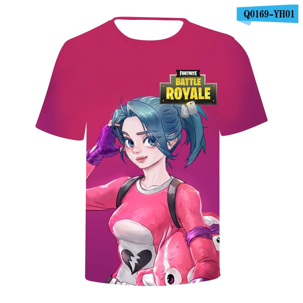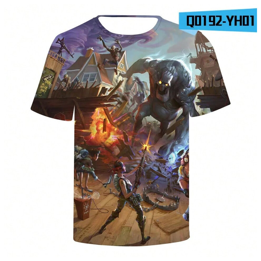 (T-5520, L) Fortnite Shooting Game T-Shirt Summer Short Sleeve Cartoon Print T Shirt Men and Women Fashion Leisure TShirt Clothing Gifts