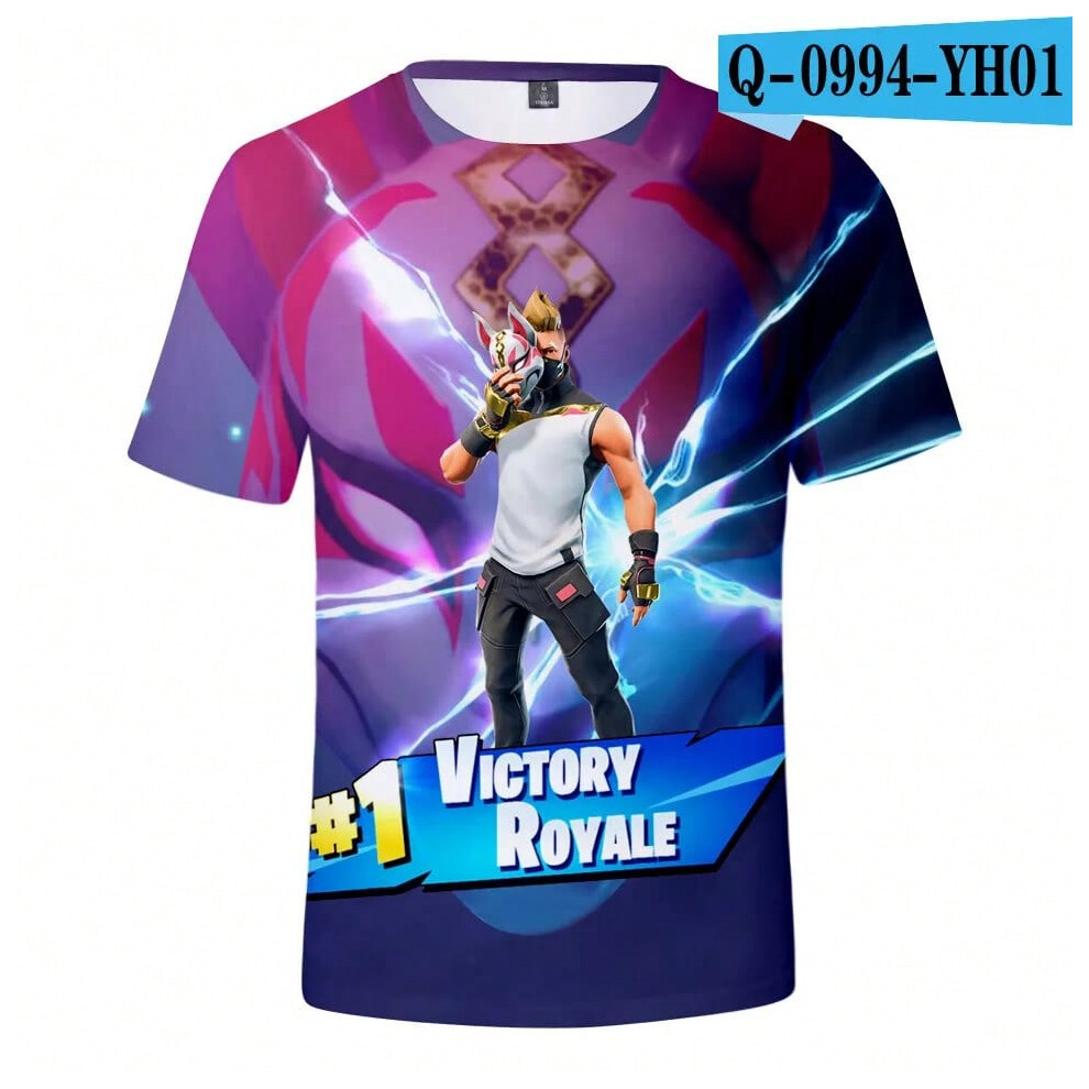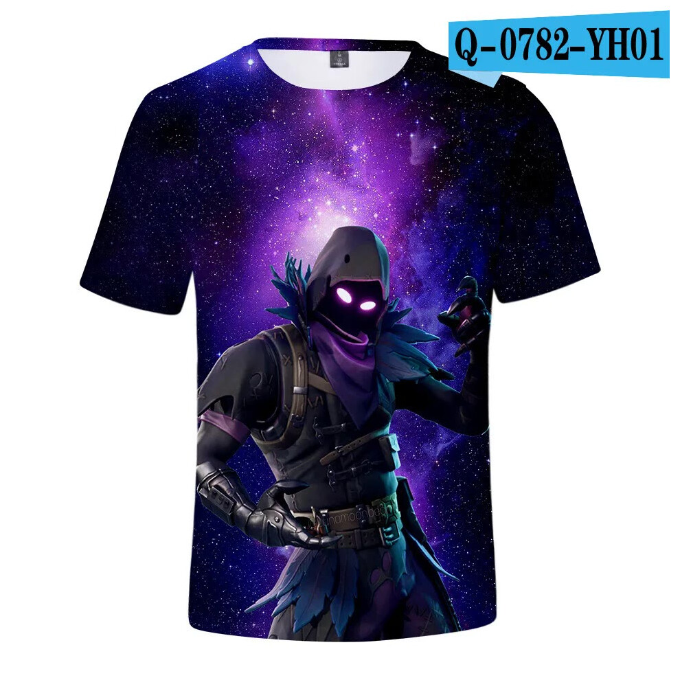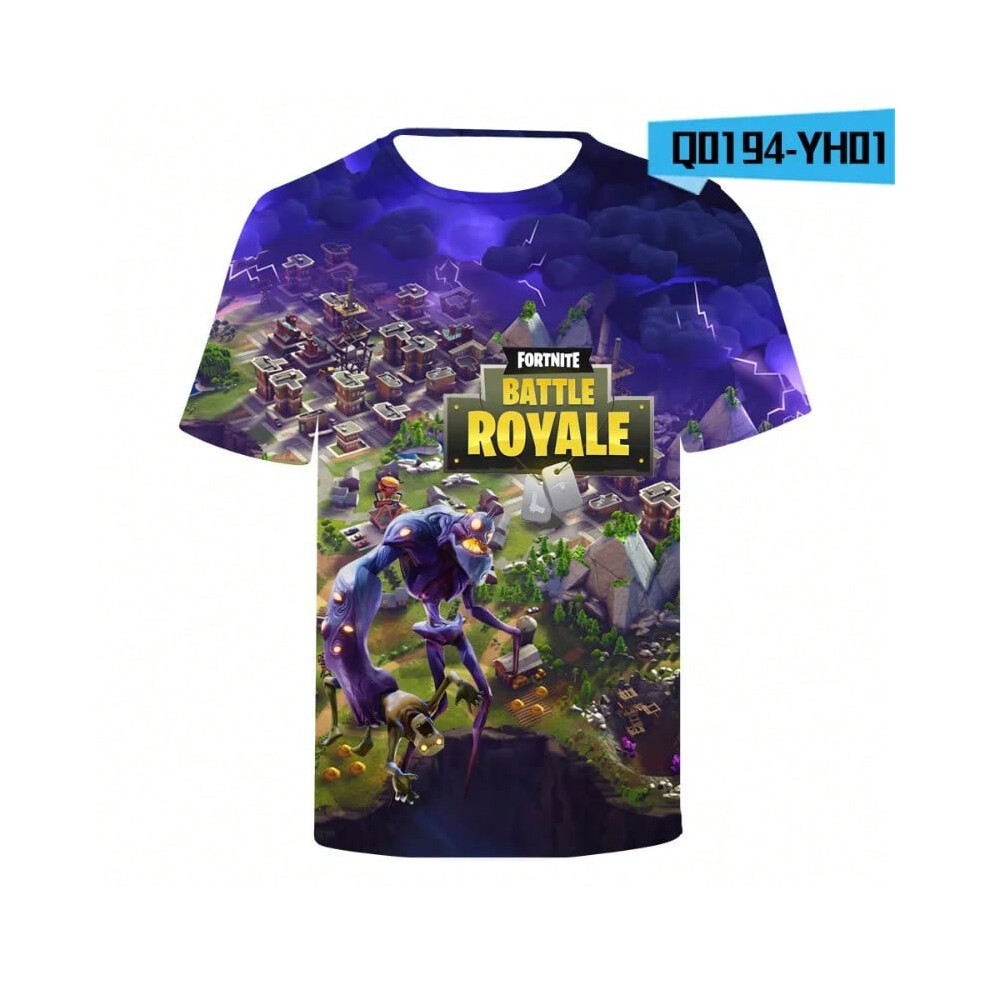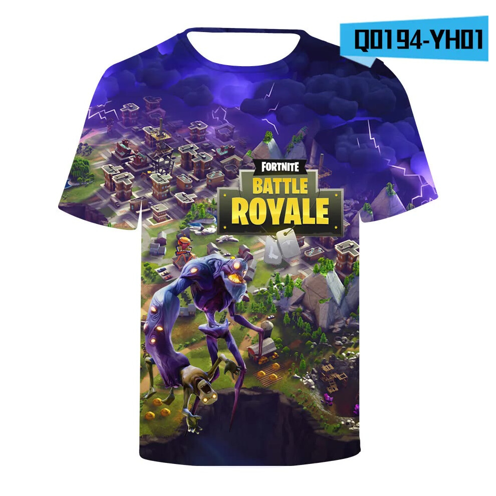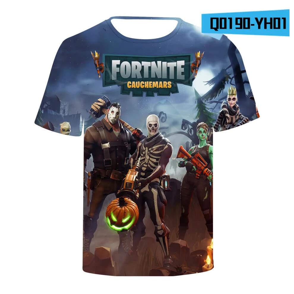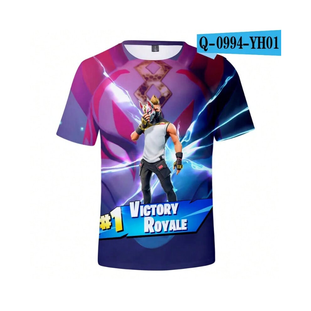 (T-5520, L) Fortnite Shooting Game T-Shirt Summer Short Sleeve Cartoon Print T Shirt Men and Women Fashion Leisure TShirt Clothing Gifts