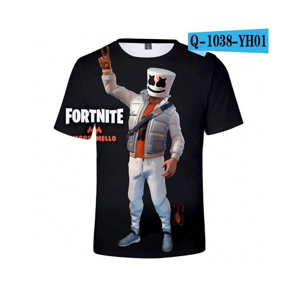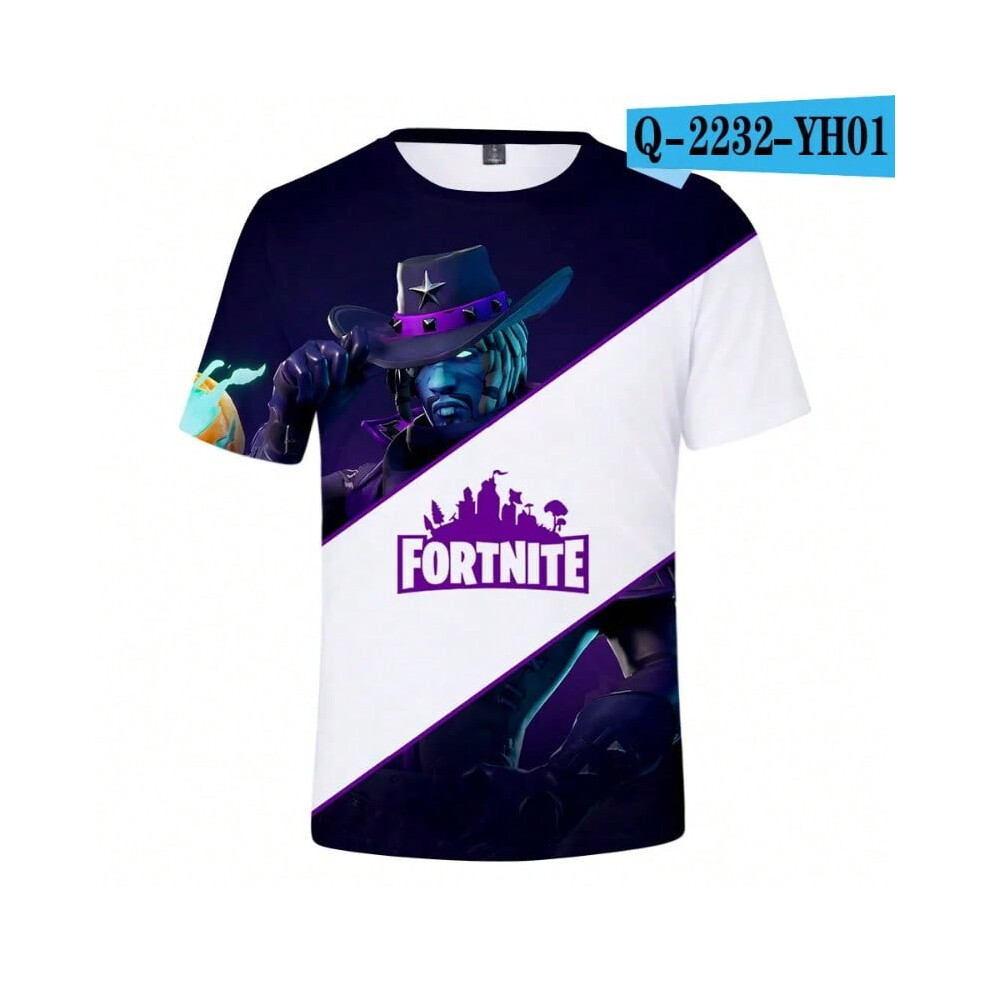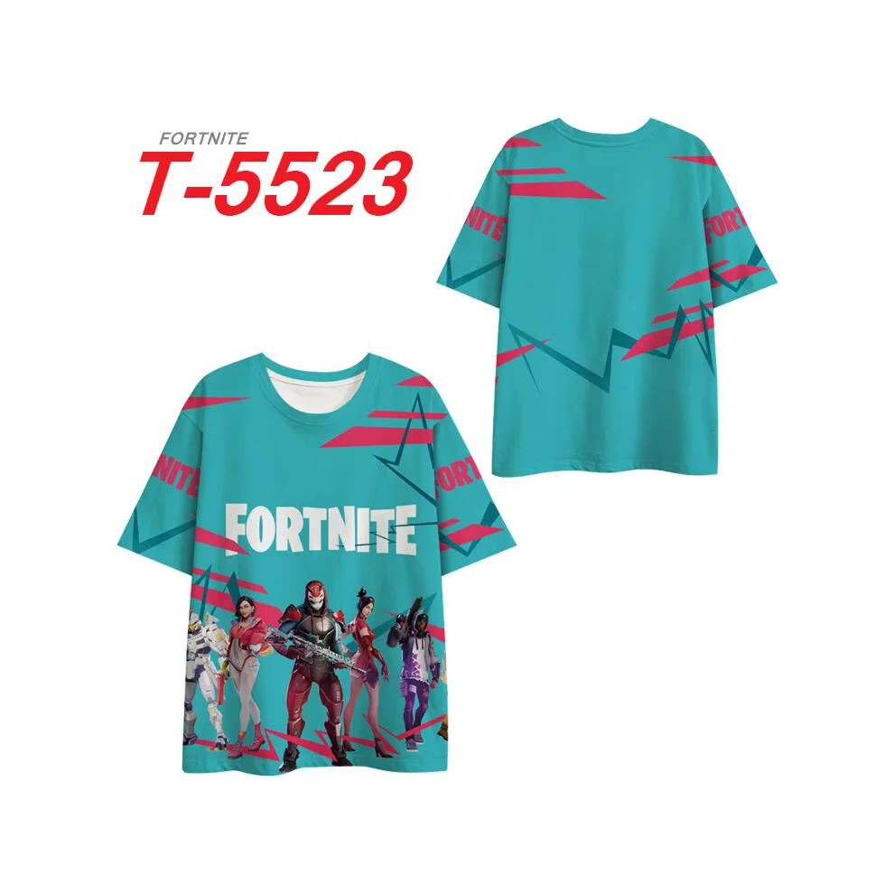 (T-5523, L) Fortnite Shooting Game T-Shirt Summer Short Sleeve Cartoon Print T Shirt Men and Women Fashion Leisure TShirt Clothing Gifts