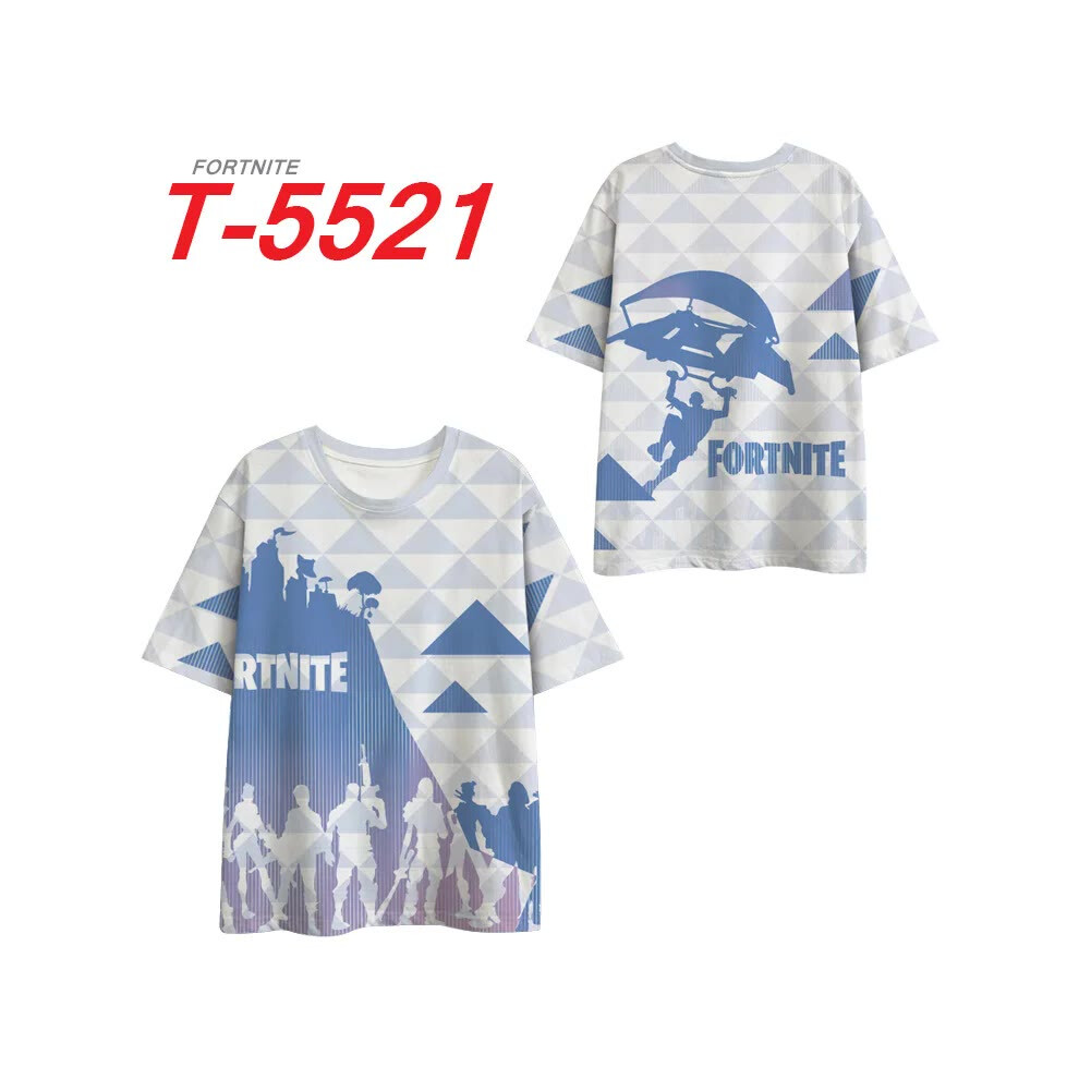 (T-5521, L) Fortnite Shooting Game T-Shirt Summer Short Sleeve Cartoon Print T Shirt Men and Women Fashion Leisure TShirt Clothing Gifts