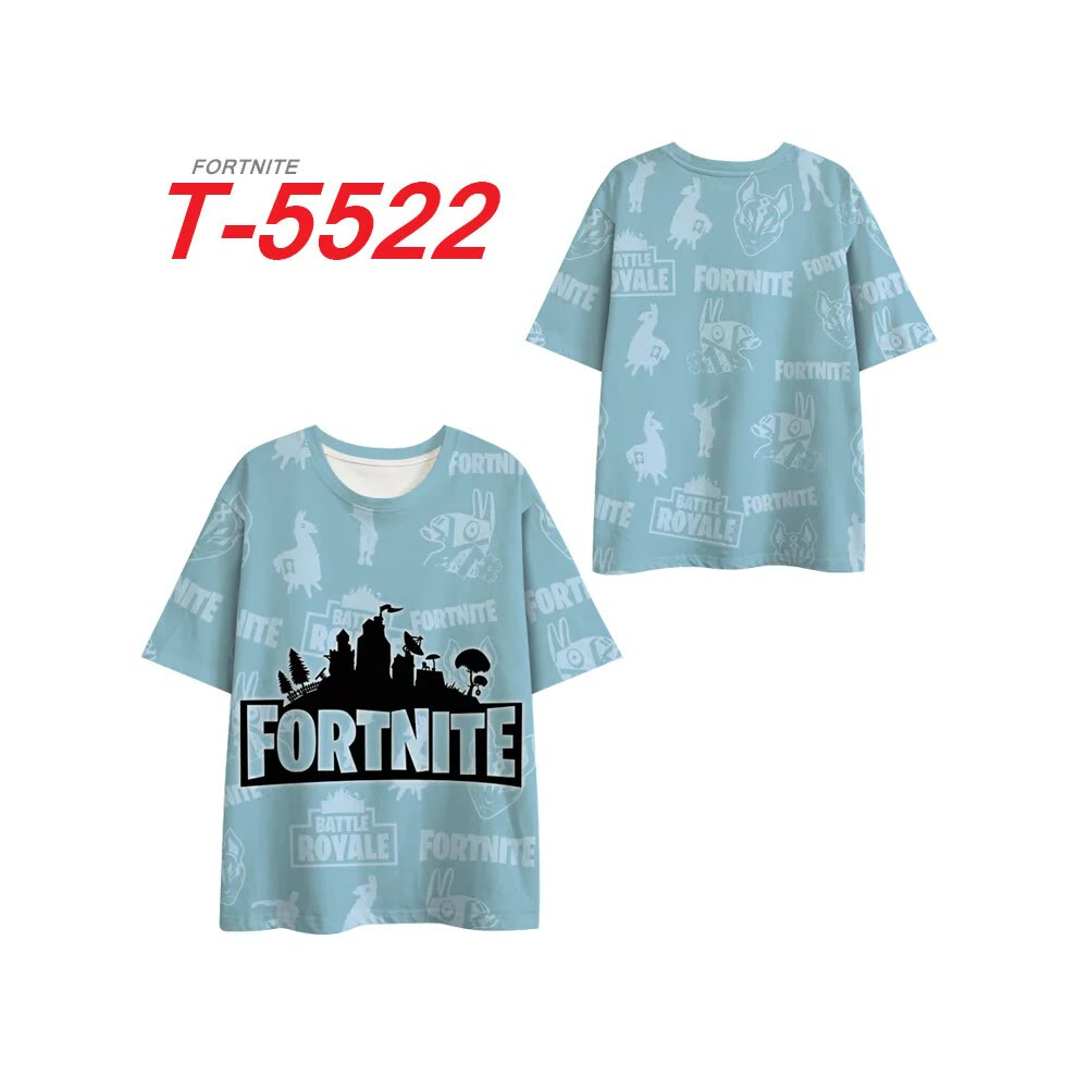 (T-5522, L) Fortnite Shooting Game T-Shirt Summer Short Sleeve Cartoon Print T Shirt Men and Women Fashion Leisure TShirt Clothing Gifts