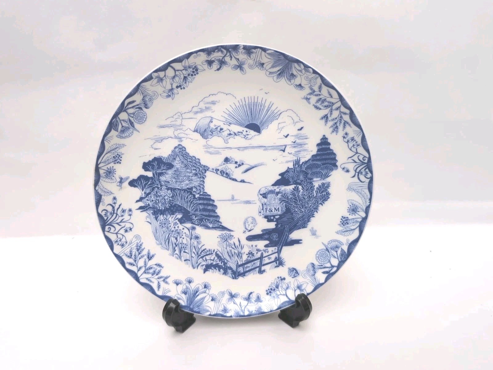 Fortnum & Mason Contemporary Willow Blue White China Round Cheese Plate 18 cm 1