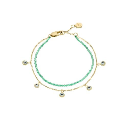 FOSSIL Womens Bracelet JF04541710 Stainless Steel Golden Green Stones